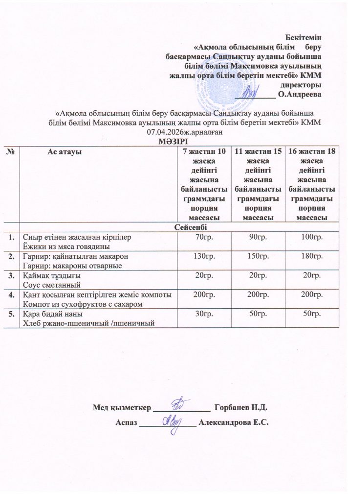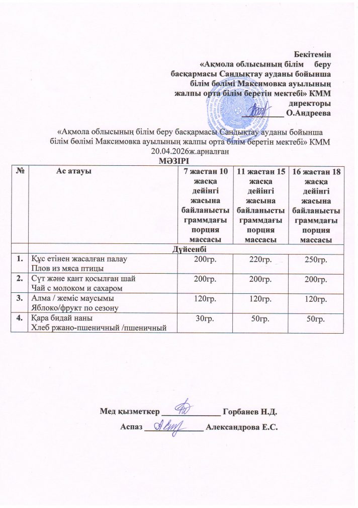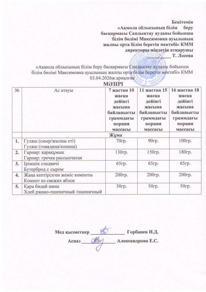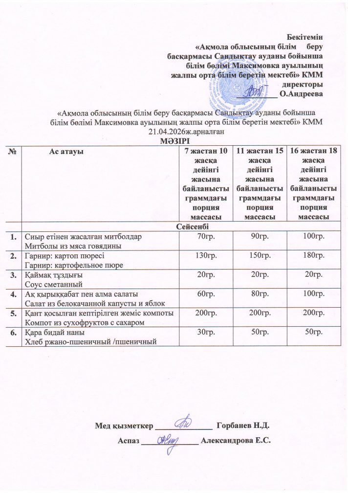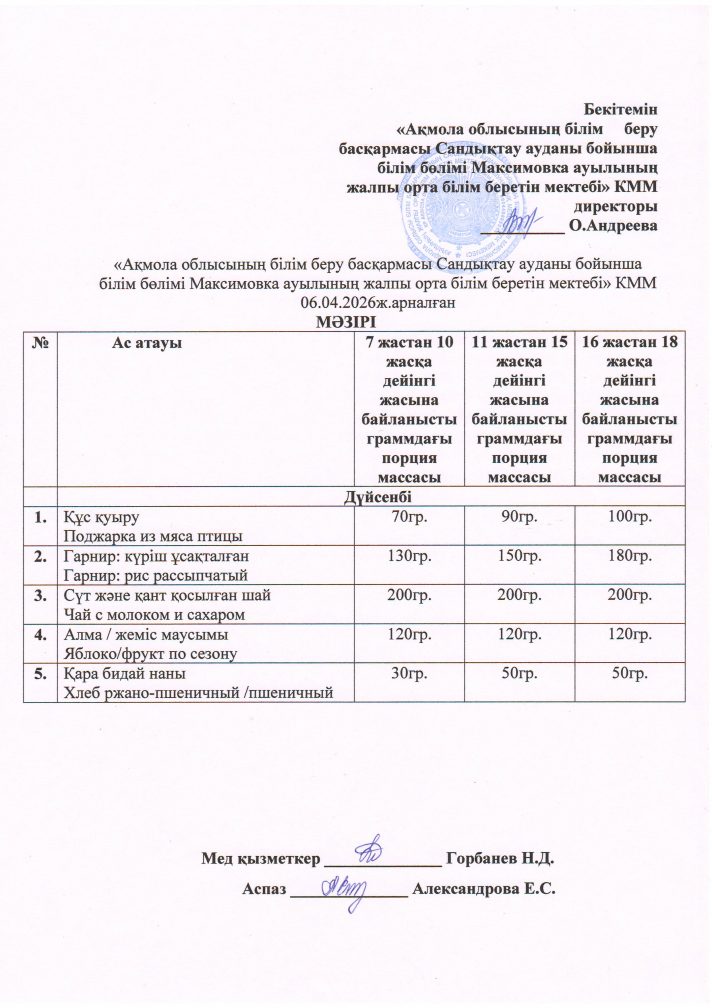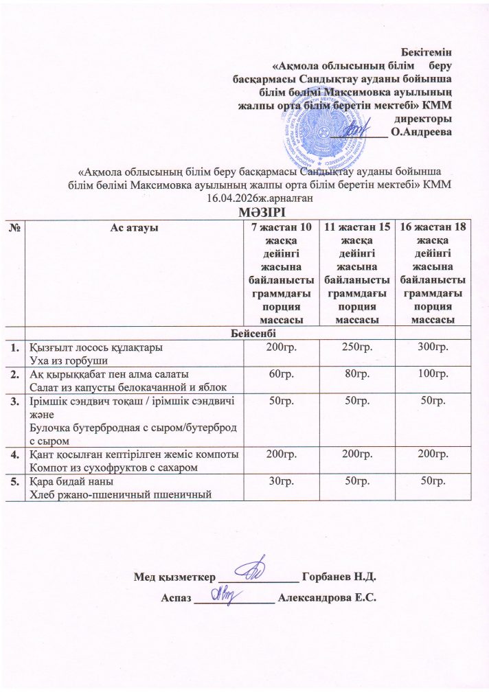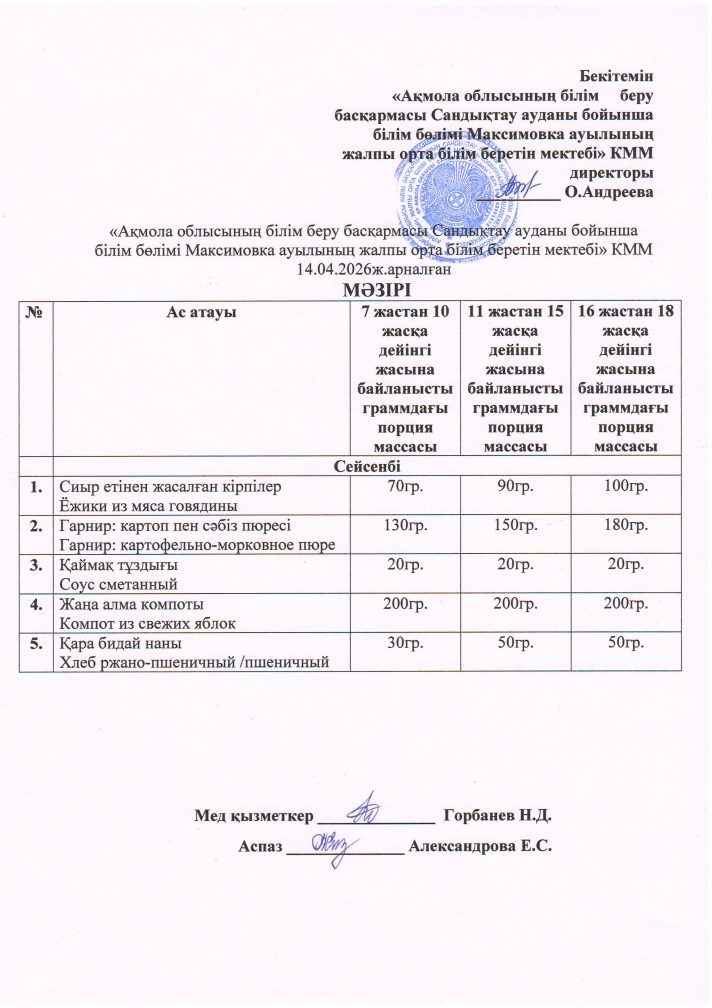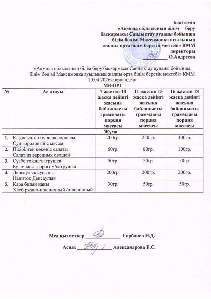 «Ақмола облысы білім басқармасының Сандықтау ауданы бойынша білім бөлімі Максимовка ауылының жалпы орта білім беретін мектебі» коммуналдық мемлекеттік мекемесі