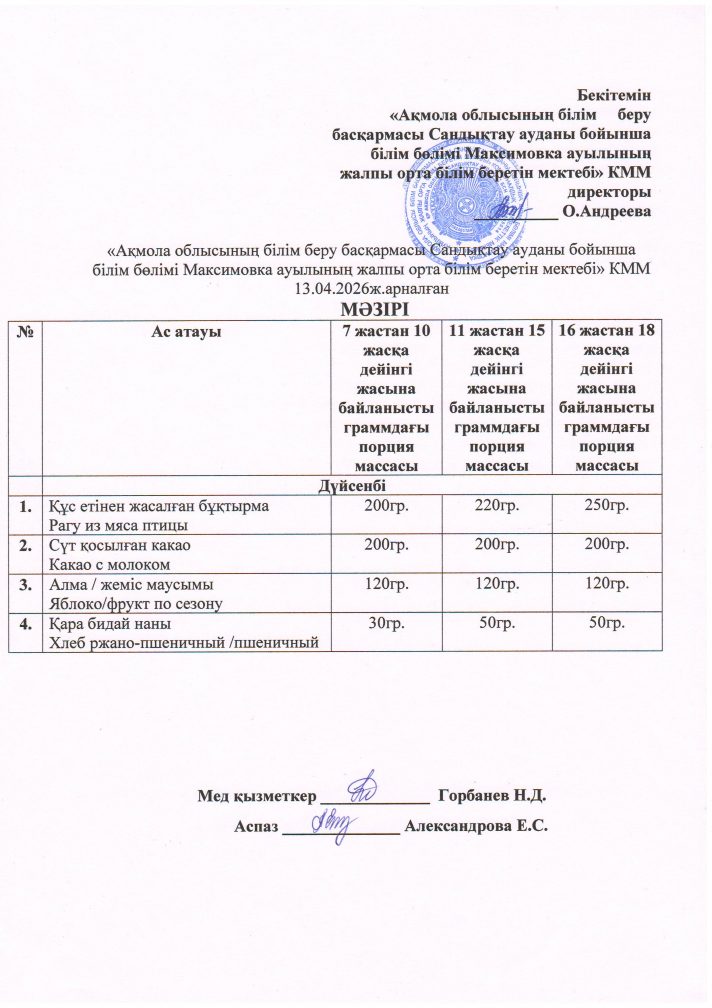 2026 жылдың сәуіріне арналған мәзір