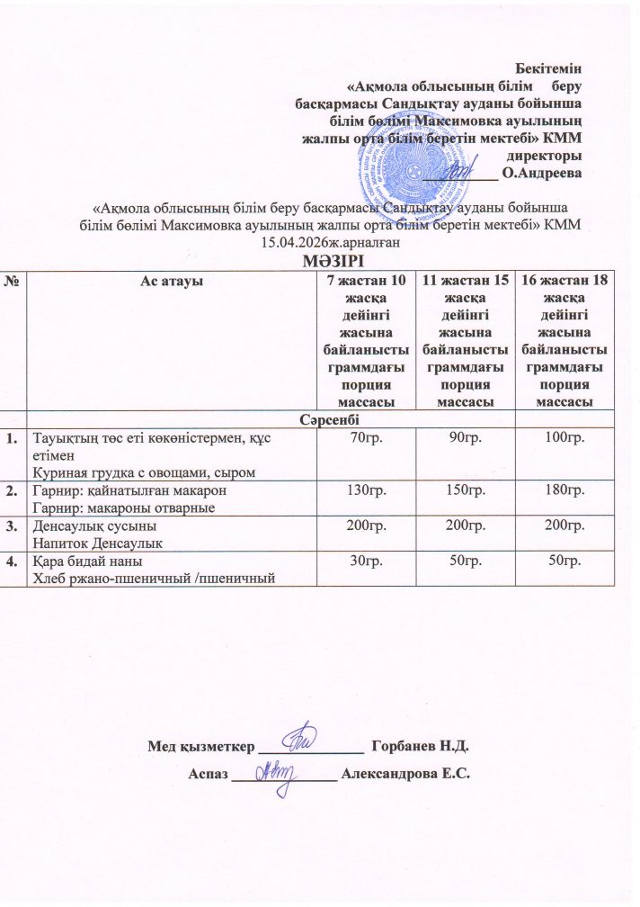 Коммунальное государственное учреждение «Общеобразовательная школа села Максимовка отдела образования по Сандыктаускому району управления образования Акмолинской области»