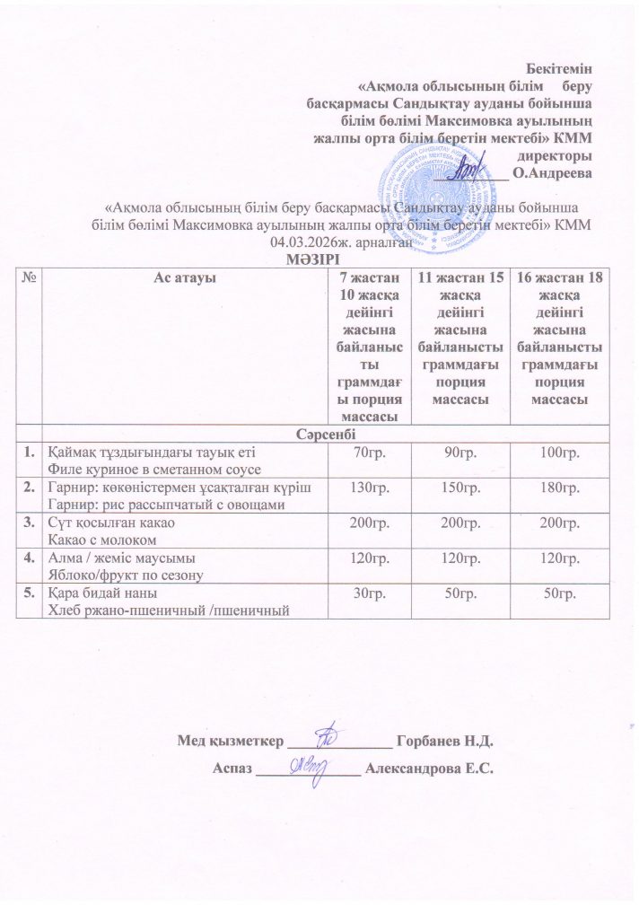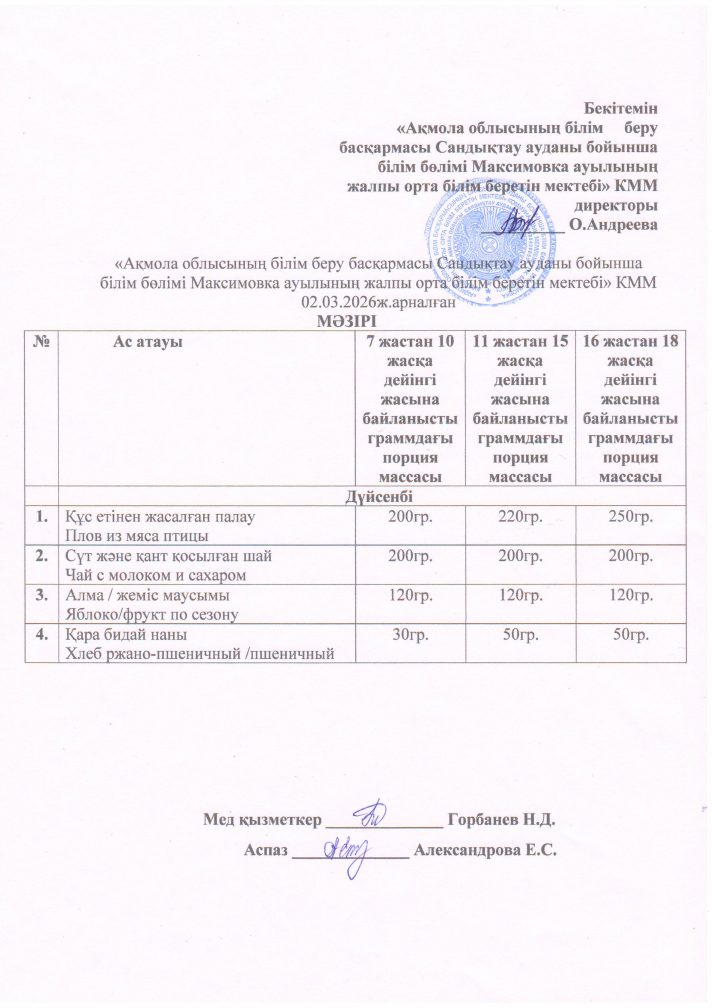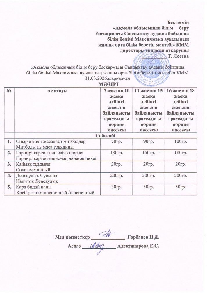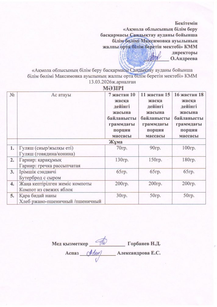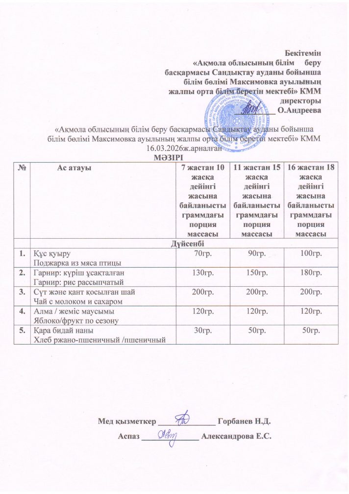 «Ақмола облысы білім басқармасының Сандықтау ауданы бойынша білім бөлімі Максимовка ауылының жалпы орта білім беретін мектебі» коммуналдық мемлекеттік мекемесі