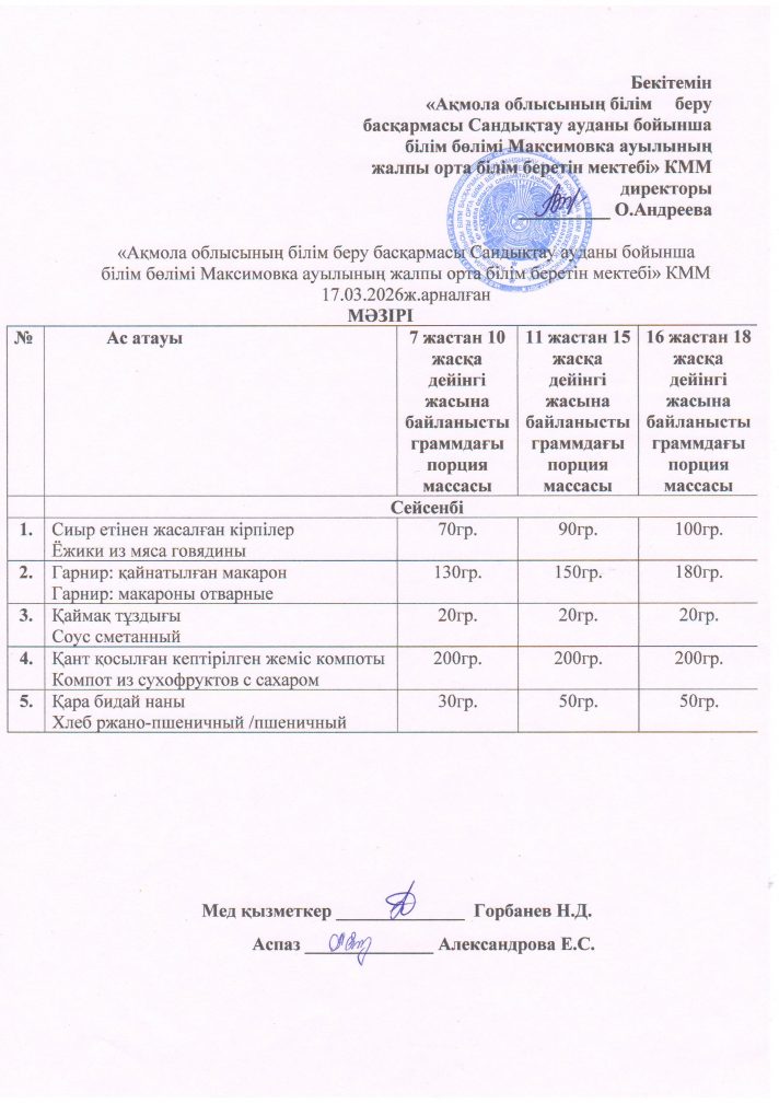 2026 жылдың наурызына арналған мәзір