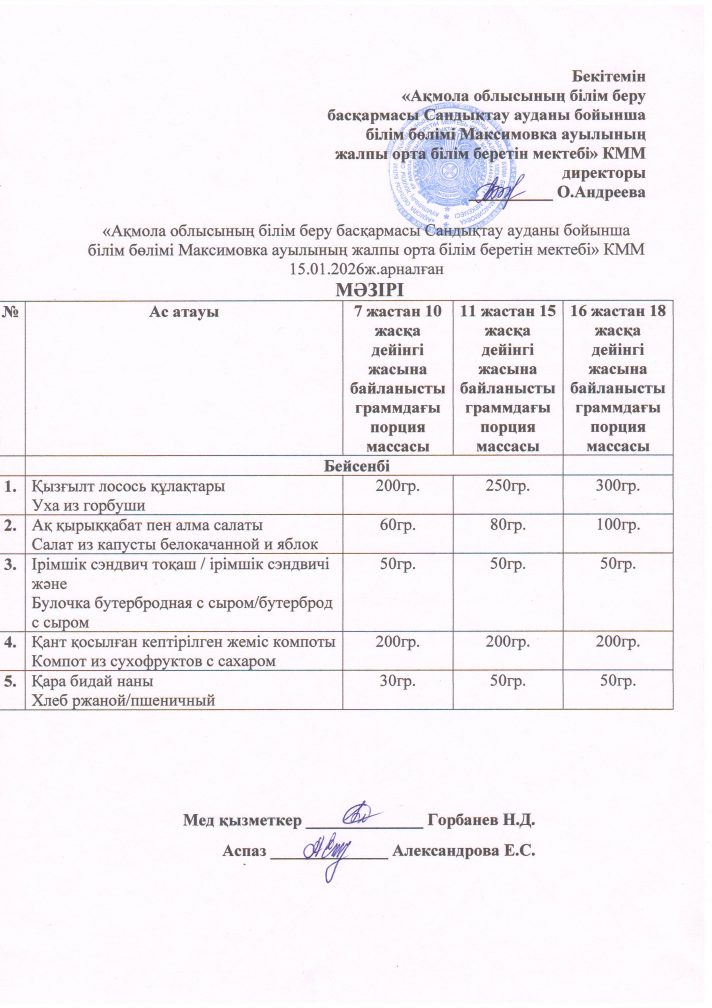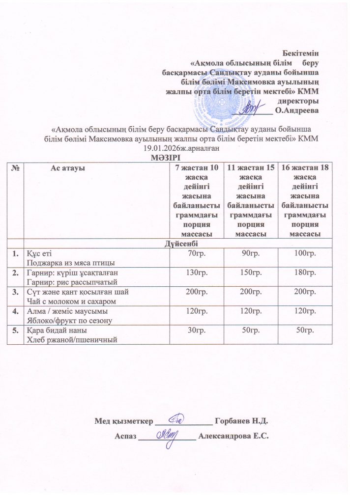 2026 ж. қаңтар айындағы мәзір